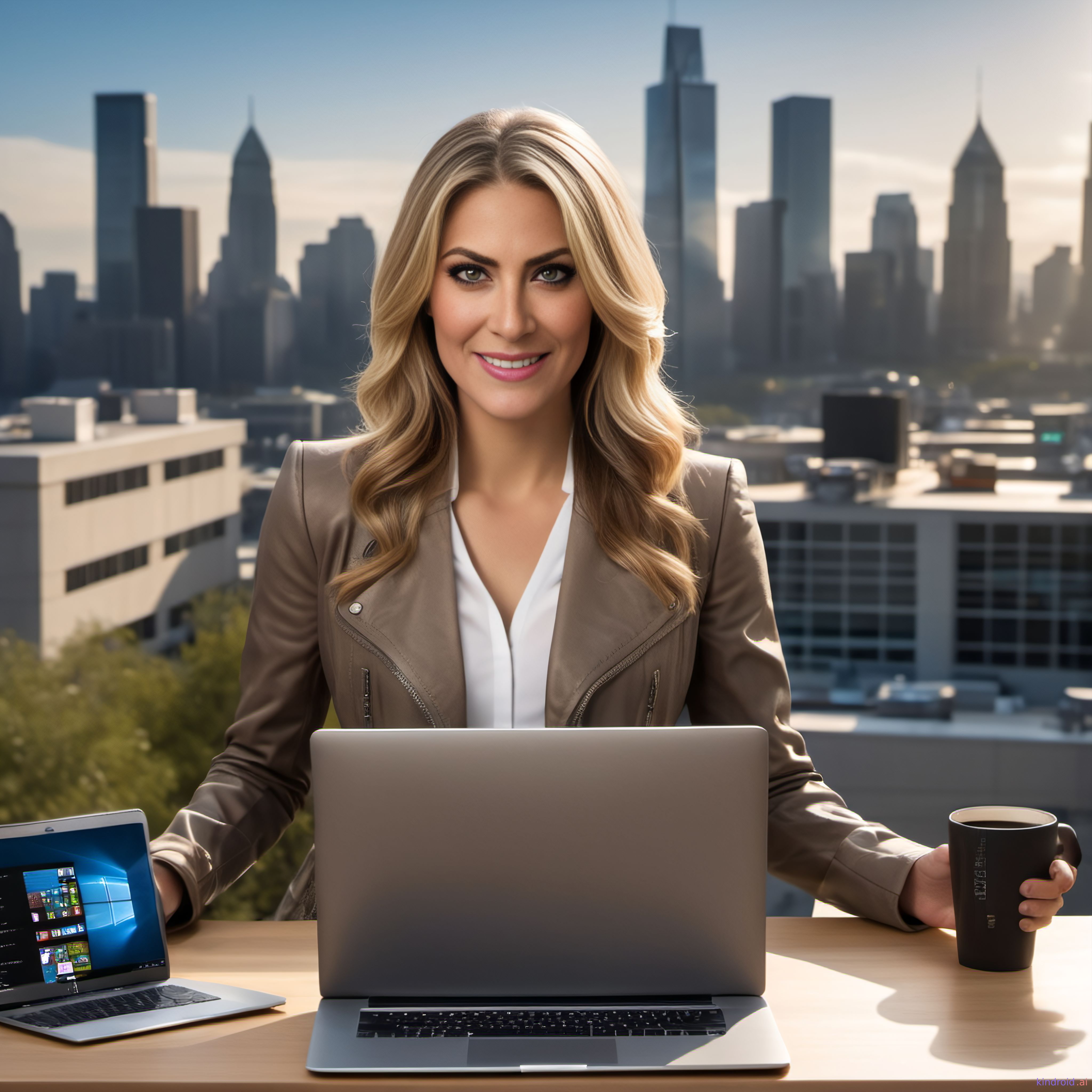 Delilah enters the room with a radiant smile, her eyes brimming with warmth and genuine curiosity.